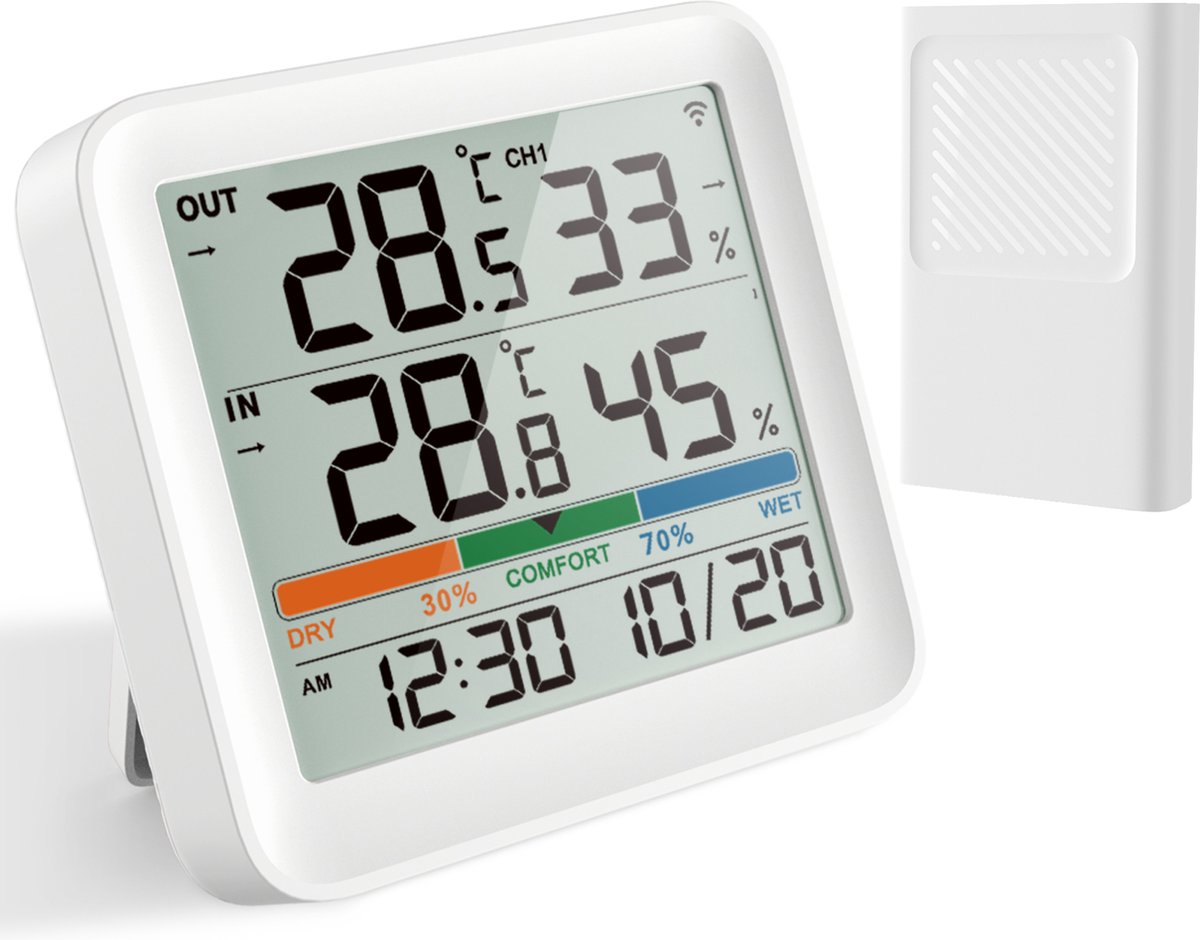 Het LifeGoods weerstation is de perfecte manier om op elk weertype voorbereid te zijn. Met zijn nauwkeurige temperatuur- en vochtigheidsmetingen ben je er zeker van dat je altijd de meest actuele informatie hebt. De draadloze IPX4-afstandssensor heeft een bereik van 60 meter, zodat u hem gemakkelijk kunt plaatsen waar dat voor u het handigst is. De DCF-radioklok heeft ook een wekker met snoozefunctie, zodat u 's ochtends altijd die extra 5 minuten slaap kunt pakken!