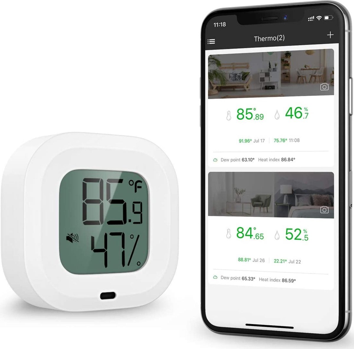 Bent u op zoek naar een nauwkeurig en betrouwbaar weerstation? Kijk dan niet verder dan onze Bluetooth 5.0 draadloze temperatuursensor! Met deze sensor kunt u eenvoudig temperatuur- en vochtigheidsgegevens bijhouden op uw smartphone of tablet, via de Sensor Blue app (gratis te downloaden in de App Store en Google Play). Met een bereik tot 35M /114.8 feet, kunt u op afstand de temperatuur en vochtigheidsgraad in real-time volgen, zelfs als u niet thuis bent!
