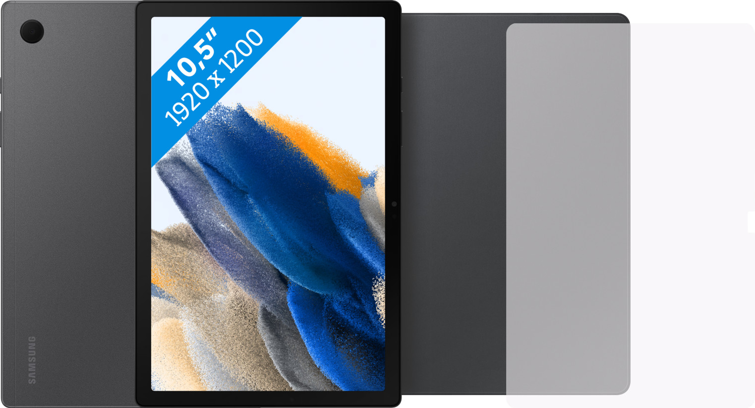 Samsung Galaxy Tab A8 32GB Wifi Grijs + Beschermingspakket. heeft een formaat van Middelgroot, een gewicht van 508 g en is gemaakt van Kunststof.